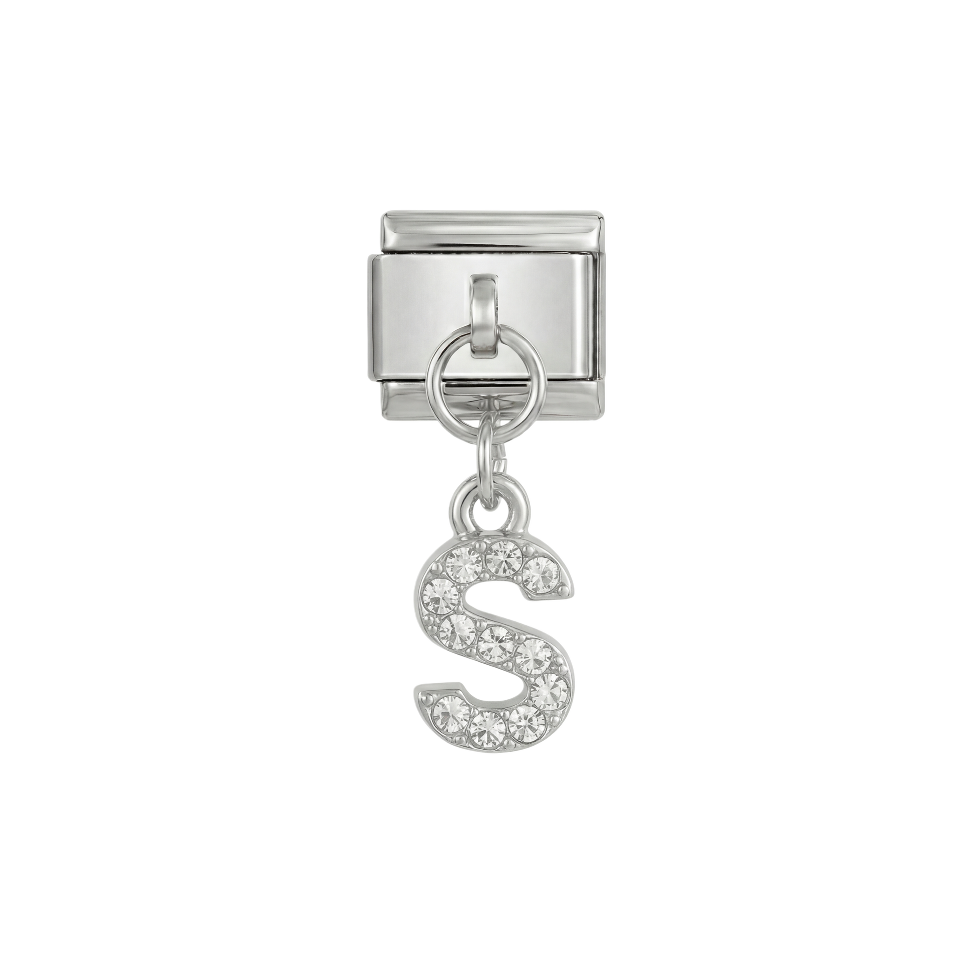 Lettre S, suspendue, sur argent